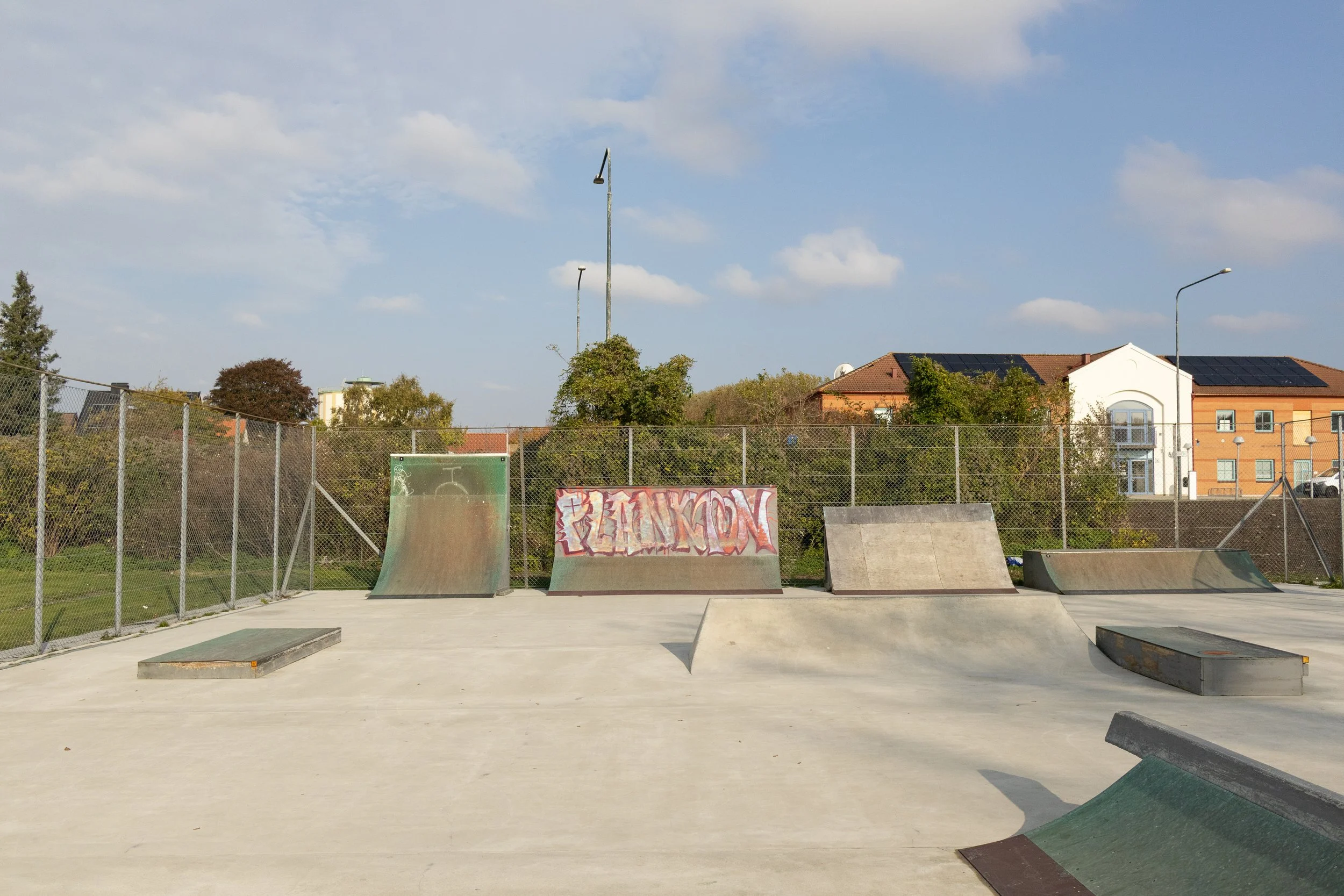 Features Yta med streetstyle vibbar. Flatrail, curb, QPs, miniramp, banks, wallride, m.m. Numera ombyggd i betong.