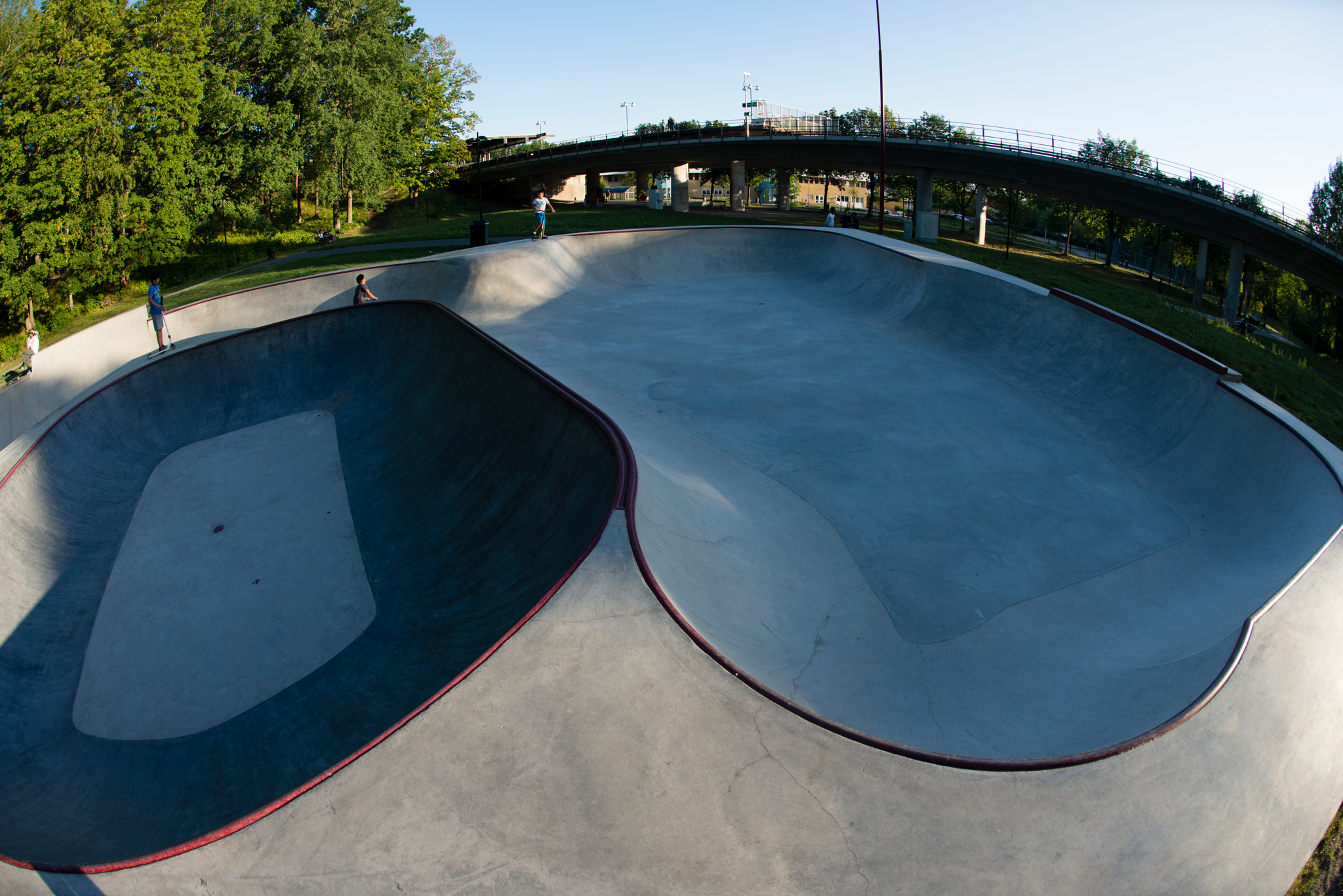 Yta 800 m2Byggd 2017 av Nord skateparksBelysning jaFeatures Beskrivning -En flowpark i betong med en svart betong bowl i mitten.