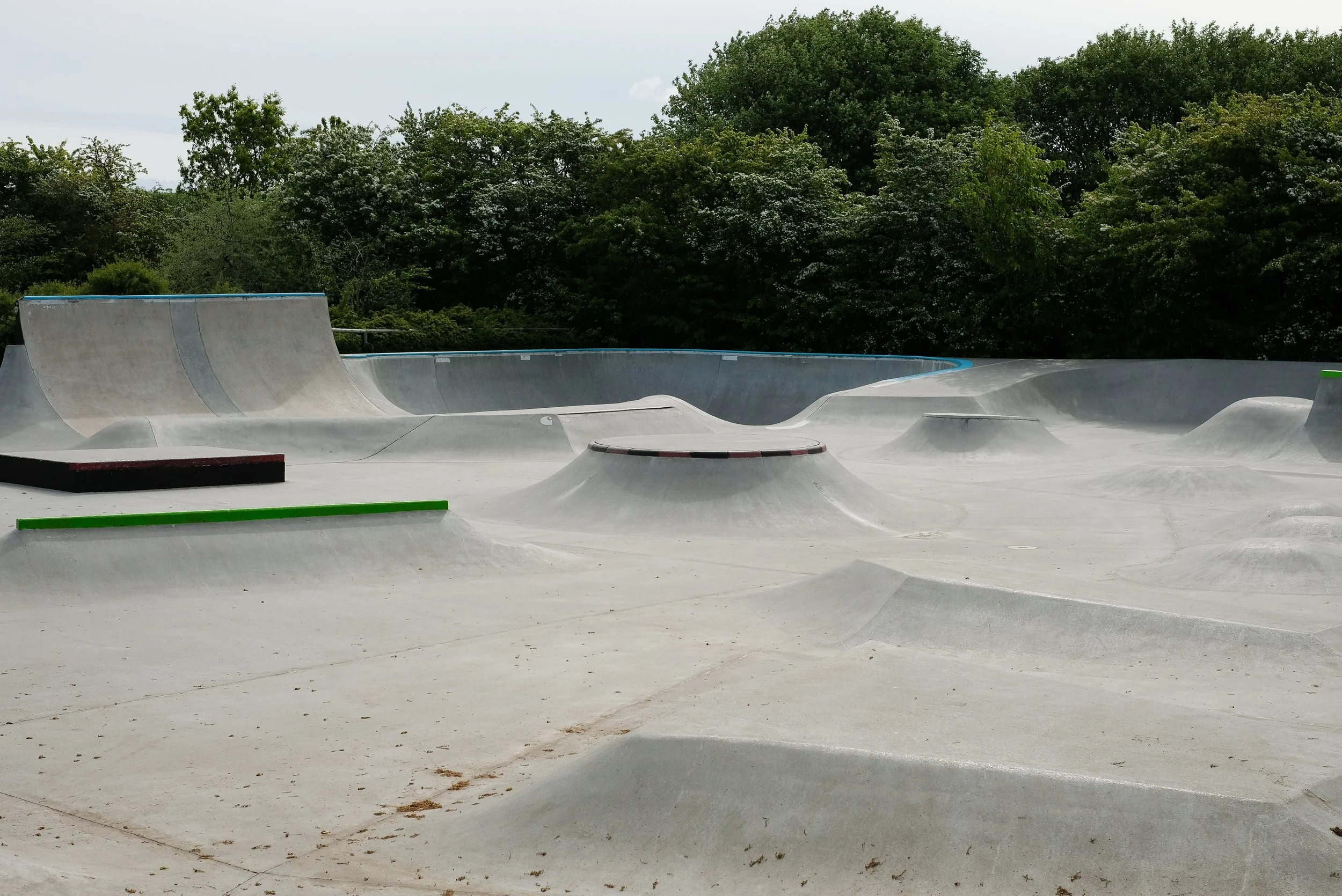 Yta 800 m2Byggd 2008 - Utbyggd 2015Du får åka SkateboardBelysning NejFeatures Skateparken har en stor quarterpipe, vulkaner, spines, hip, banks och flatledge.